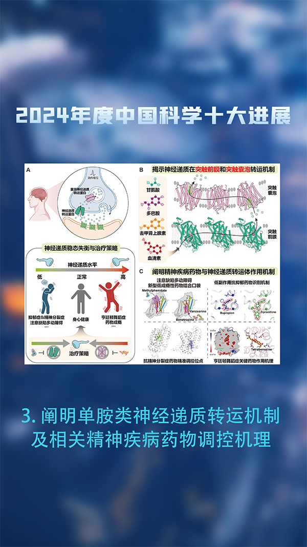 这些进展分别为:嫦娥六号返回样品揭示月背28亿年前火山活动、实现大规模光计算芯片的智能推理与训练、阐明单胺类神经递质转运机制及相关精神疾病药物调控机理、实现原子级特征尺度与可重构光频相控阵的纳米激光器、发现自旋超固态巨磁卡效应与极低温制冷新机制、异体CAR-T细胞疗法治疗自身免疫病、额外X染色体多维度影响男性生殖细胞发育、凝聚态物质中引力子模的实验发现、高能量转化效率锕系辐射光伏微核电池的创制、发现超大质量黑洞影响宿主星系形成演化的重要证据。