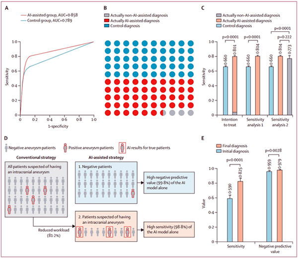 ![]() 图 人工智能自动化检测模型改善颅内动脉瘤诊断流程和性能 在国家自然科学基金项目(批准号:81830057、82102155)等资助下,南京大学医学院附属金陵医院放射诊断科张龙江教授、徐州医科大学附属医院胡春峰教授、香港大学俞益洲教授及其合作者在颅内动脉瘤人工智能影像检测研究方面取得进展。研究成果以“CT血管成像颅内动脉瘤的深度学习检测模型:一项来自中国的阶梯式、多中心、早期临床验证研究(A deep-learning model for intracranial aneurysm detection on CT angiography images in China: a stepwise, multicentre, early-stage clinical validation study)”为题,在《柳叶刀·数字医疗》(Lancet Digital Health)杂志发表,论文链接:https://www.thelancet.com/journals/landig/article/PIIS2589-7500(23)00268-6。 颅内动脉瘤在中国人群中的患病率为7.0%,其破裂是引起蛛网膜下腔出血(Subarachnoid hemorrhage,SAH)的主要原因,致残致死率高达50%。CT血管成像(CT angiography,CTA)是一种无创、方便、可靠的颅内动脉瘤检测手段。但由于颅内血管系统的复杂性,临床上对于尺寸相对较小的动脉瘤经常出现漏诊或误诊。近年来,人工智能(Artificial intelligence,AI)在基于医学影像的病变检测领域展现出了巨大潜力。但是,由于AI诊断在临床中的应用缺乏严格的验证流程,其对医生诊断效能的影响尚不清楚。 研究团队基于AI驱动的决策支持系统开发和探索性临床研究指南(Developmental and Exploratory Clinical Investigations of DEcision support systems driven by AI,DECIDE-AI),开展了基于全国15个省份、27家医院的多中心临床验证研究。团队使用大队列的16,546例CTA数据,构建了基于全局上下文建模网络(Global Context Network)和局部细粒度网络(Local Fine-grained Network)的动脉瘤检测级联网络模型。在内部数据验证中,该模型检测颅内动脉瘤的敏感性高达95.7%,每个病例处理时间平均仅为22.2秒。在外部验证中,团队开展了人机对比、多读者多病例、开放标签随机对照以及前瞻探索性临床验证研究,均证明了该模型可有效提高颅内动脉瘤的诊断敏感性。 总之,这项工作构建了一个基于头颅CTA图像数据的颅内动脉瘤AI影像自动化检测模型,建立了AI诊断颅内动脉瘤的临床验证流程,在提升我国颅内动脉瘤影像诊断同质性方面具有较大潜力,将为进一步探索基于颅内动脉瘤AI模型对患者诊断及预后结局影响的大型前瞻性临床试验提供参考。 |