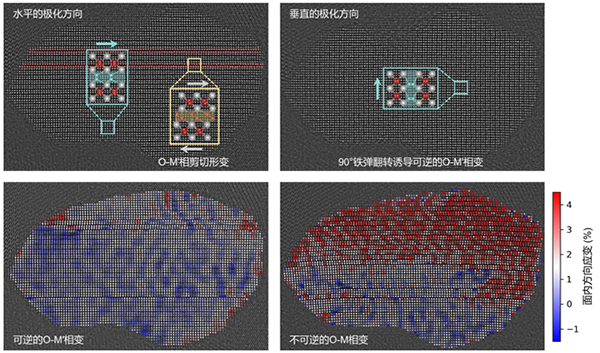 ![]() 图 原子尺度成像揭示铁弹保护的可逆O-Mʹ相变和张应变诱导的不可逆O-M相变 在国家自然科学基金项目(批准号:52322212、52250402、52025025)等资助下,中国科学院物理研究所张庆华副研究员、葛琛研究员与清华大学谷林教授合作,在萤石结构铁电材料领域研究取得新进展。相关研究成果以“二氧化锆中铁弹性保护的可逆正交-类单斜相变(Ferroelastically protected reversible orthorhombic to monoclinic-like phase transition in ZrO2 nanocrystals)”为题,于2024年4月8日发表在《自然•材料》(Nature Materials)杂志上。论文链接:https://www.nature.com/articles/s41563-024-01853-9。 以HfO2和ZrO2为代表的萤石结构氧化物薄膜在纳米尺度拥有稳定的铁电性,并且高度兼容于硅基半导体工艺,在非易失性存储器、场效应晶体管以及储能装置中有着良好的应用前景。然而,由于其极性的正交相(O相)在室温下是一种亚稳态相,容易转变为基态非极性的单斜相(M相),从而导致其铁电性能的衰退。因此,探索该体系中O-M相变的临界条件以及潜在的可逆相变路径对于稳定萤石氧化物的铁电性尤为关键。 为解决以上科学难题,研究团队利用原位球差电镜成像方法,在实验上观测了萤石铁电体系可逆和不可逆的极性-非极性相变过程,首次在原子尺度上揭示了铁弹性保护的可逆正交-单斜相变机制,并精确测量了稳定极性正交相的临界张应变条件(图)。研究发现铁弹性保护的可逆极性-非极性相变源于热力学上剪切形变和铁弹翻转的不兼容性,O-M剪切形变所积累的张应变导致了极性-非极性相变可逆性的衰退。该研究提出的铁弹翻转保护相变可逆性的机制和铁电相临界应变条件深化了对铁电材料中铁电-铁弹耦合现象的理解,也为萤石结构铁电半导体器件的稳定性设计提供了新的理论依据。 |