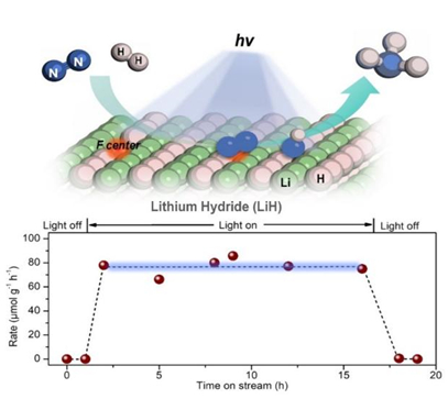 图 氢化锂表面光化学固氮过程示意及光催化合成氨性能